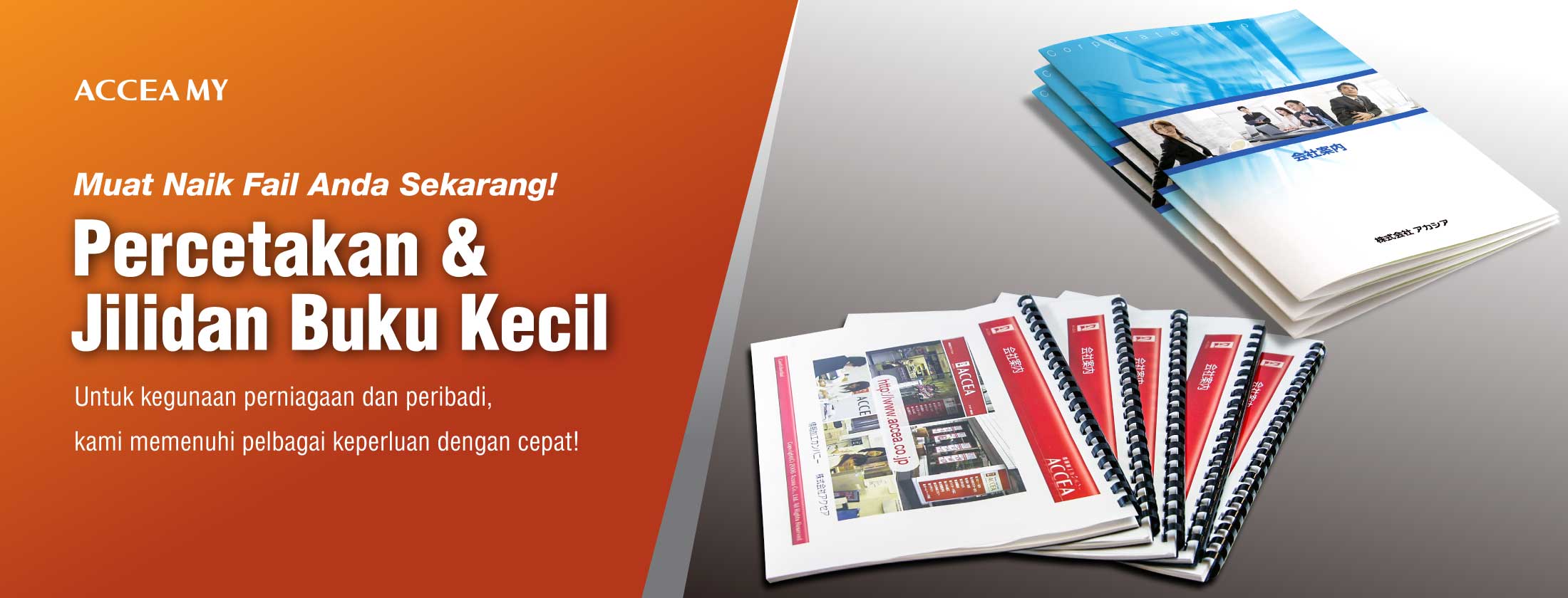 Perkhidmatan Percetakan dan Penjilidan Buku Kecil ACCEA memenuhi pelbagai keperluan, dari buku kecil sokongan perniagaan seperti manual syarikat, bahan persidangan, dan katalog produk, ke buku kecil yang dicipta untuk keseronokan peribadi.