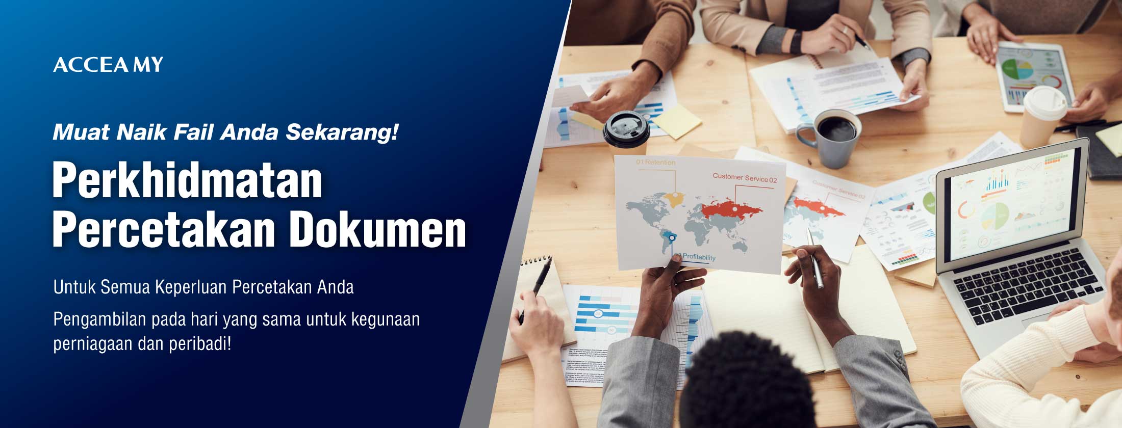Kami menyampaikan percetakan dokumen berkualiti tinggi dengan pantas, dari hitam-putih ke warna yang hidup, untuk memenuhi setiap keperluan.